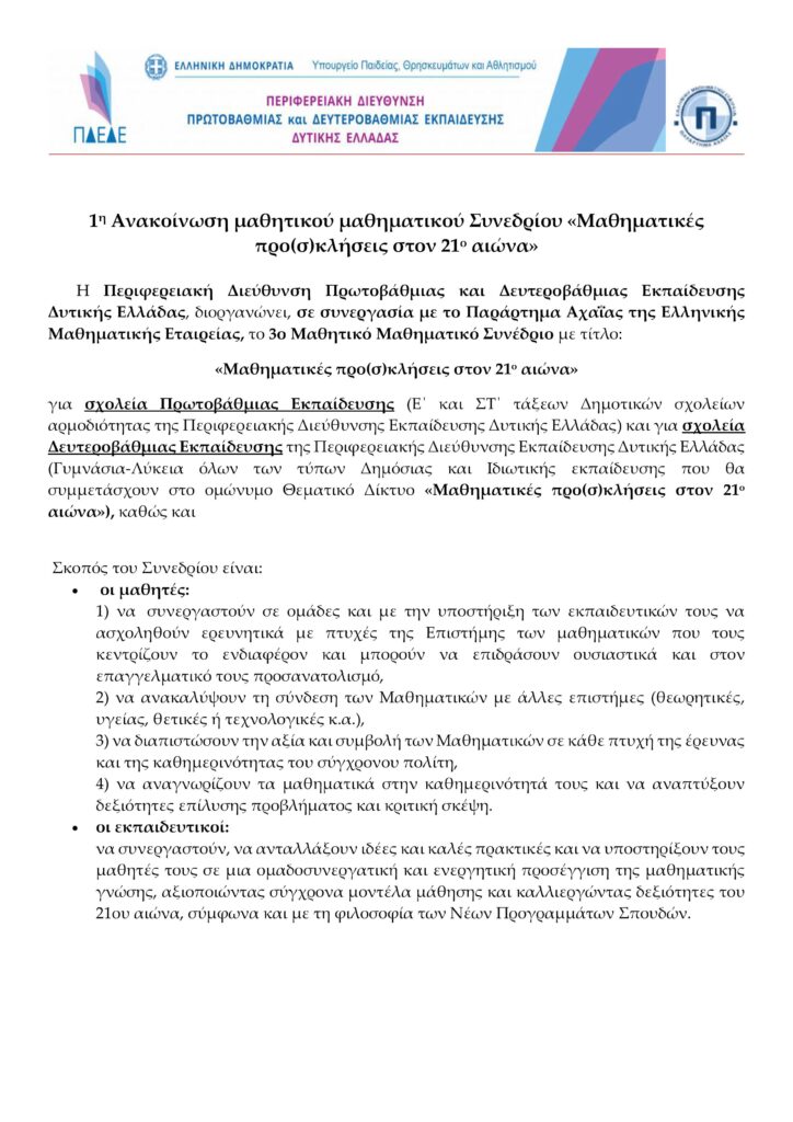 “Μαθηματικές προ(σ)κλήσεις στον 21ο αιώνα”